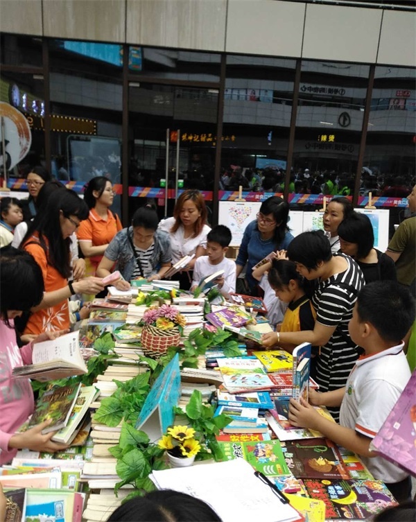 緊接著是各單位的曬書活動,各校各具特色的書攤書目琳瑯滿目,孩子們和家長穿梭在各大攤位間去尋找自己喜歡的書籍,樂此不疲,享受著讀書的喜悅,體驗(yàn)著讀書的樂趣。他們以書會友,或換入,或換出,“忙”得不亦樂乎。書攤的攤主們和義工們更是樂開了花。孩子們在曬書活動中不僅交換了心愛的書籍,還提高了與人交往的能力。