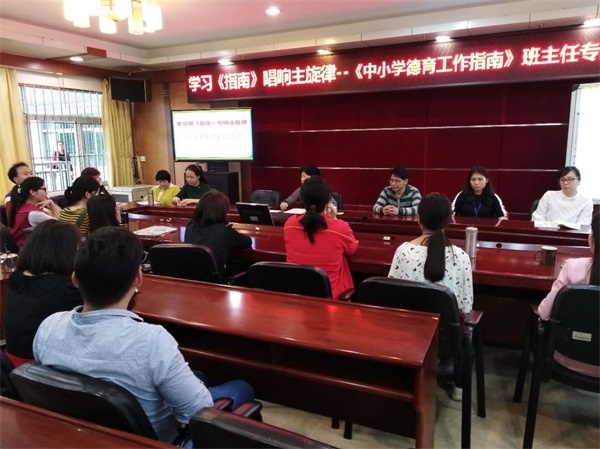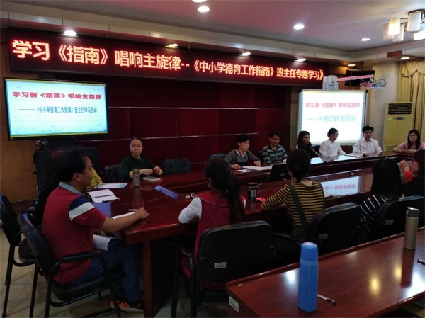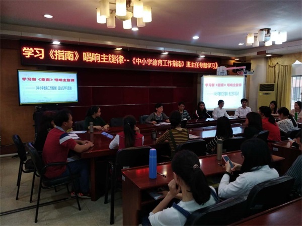 會(huì)上,學(xué)校主管德育工作的汪雁苑副校長(zhǎng)首先帶領(lǐng)全體班主任對(duì)《指南》進(jìn)行學(xué)習(xí)解讀,從常規(guī)奠基礎(chǔ)、目標(biāo)為動(dòng)力、合作求共贏、環(huán)境要重視、實(shí)際是起點(diǎn)、行動(dòng)最關(guān)鍵六個(gè)方面,向全體班主任老師交流了個(gè)人學(xué)習(xí)《指南》精神的體會(huì)。接著結(jié)合開(kāi)學(xué)以來(lái)學(xué)校工作實(shí)際,對(duì)全體班主任老師提出了具體的要求和期望。她要求全體班主任明確自身職責(zé),針對(duì)當(dāng)前實(shí)際,注重德育工作的規(guī)范性和實(shí)效性,希望老師們通過(guò)認(rèn)真研讀《指南》,不斷促進(jìn)自身工作的專業(yè)性,提升德育專業(yè)能力的熱潮,促使班主任工作向智慧型轉(zhuǎn)變。