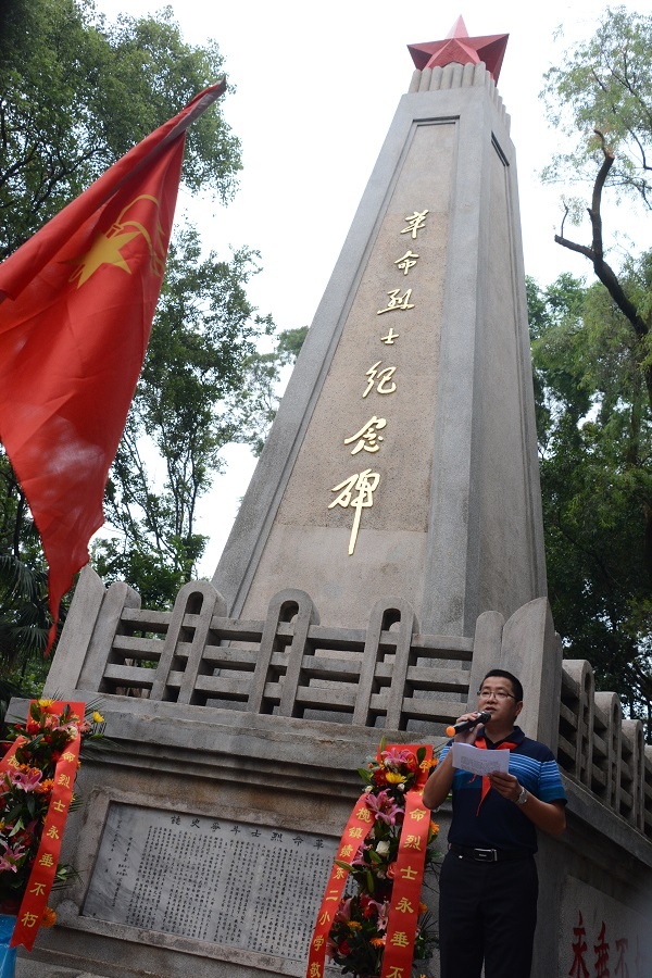 在活動中,全體師生們莊嚴(yán)肅立在紀(jì)念碑前,注視著鮮紅的隊旗,用嘹亮而又堅定的聲音齊唱著中華人民共和國國歌和少先隊隊歌《我們是共產(chǎn)主義接班人》。接著少先隊代表向烈士紀(jì)念碑敬獻(xiàn)了花籃,師生向烈士們莊嚴(yán)地三鞠躬表達(dá)了對先烈的深切哀悼和無盡的敬仰之情,緊接著少先隊大隊輔導(dǎo)員陳凱訊老師帶領(lǐng)同學(xué)們呼號,呼吁學(xué)生為共產(chǎn)主義事業(yè)貢獻(xiàn)力量?;顒幼詈?,由李彥峰校長講話,希望全體少先隊員牢記革命烈士的豐功偉績,繼承革命烈士的遺志,從小樹立遠(yuǎn)大理想,好好學(xué)習(xí),天天向上,為了祖國更加強(qiáng)盛,家鄉(xiāng)更加繁榮而奮發(fā)努力。最后,全體師生繞紀(jì)念碑墓一周為烈士獻(xiàn)花。活動在莊嚴(yán)肅穆的氣氛中結(jié)束。