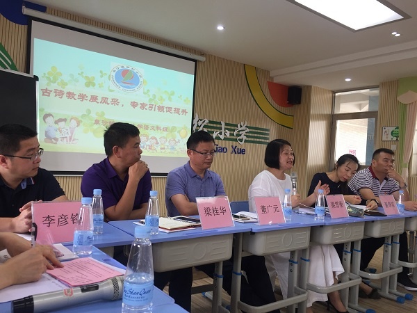 為了弘揚(yáng)和傳承中華民族燦爛文化,激發(fā)學(xué)生學(xué)習(xí)古詩的興趣;進(jìn)一步優(yōu)化古詩課堂教學(xué)架構(gòu),探索有效的古詩課堂教學(xué)方法,也為推進(jìn)市立項(xiàng)課題《基于單元主題閱讀的小學(xué)生閱讀能力的實(shí)證研究》深度進(jìn)行,推進(jìn)培養(yǎng)學(xué)生閱讀能力的策略研究,4月11日,小欖鎮(zhèn)績東二小學(xué)李彥峰校長和課題主持人何小玲主任受邀到阜沙鎮(zhèn)羅松小學(xué)參加市教研室“梁雪菊名師工作室”教學(xué)研討活動(dòng)。