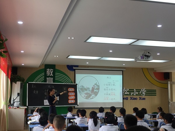 “古詩教學(xué)展風(fēng)采,專家引領(lǐng)促提升”,本次教學(xué)研討活動(dòng)由羅沙小學(xué)葉露老師執(zhí)教《小池》,雪菊工作室成員董春雷老師執(zhí)教《池上》。葉老師教學(xué)思路清晰,課堂上多種形式朗讀,在反復(fù)朗讀中,學(xué)生熟讀成誦;董老師語言童趣,識字方式多樣,重在授予學(xué)生學(xué)習(xí)的方法。