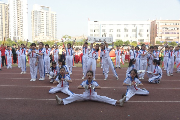 上午8點整,隨著歡快的彩旗隊指引,各具特色的班級方陣展示開始了。圍繞開幕式的主題“我和祖國共成長”各班排成整齊的方陣,步履矯健,所選的紅歌和所跳的紅舞均彰顯出班級特色和對繁榮祖國的歌頌。天真的孩子們手執(zhí)鮮艷的小國旗,如同手持一個個色彩斑斕的夢想;十幾位同學(xué)挑長龍而入,栩栩如生的長龍在他們手中,仿佛被注入了新的靈魂。盤旋著、飛舞,他們不斷變換隊形,如同蓄勢待發(fā)的巍巍蛟龍,彰顯出祖國臥虎藏龍、龍騰虎躍的豪邁氣勢!“咚咚咚”,伴隨著節(jié)奏感十足的鼓點,又一支雄赳赳氣昂昂的隊伍,向主席臺進發(fā)了,代表著必勝的決心和雄壯的氣魄,如同華夏兒女的象征;還有一支隊伍,他們身著唐裝,用天真無邪的笑容演繹蓬勃生機,更彰顯出對中華傳統(tǒng)文化的熱愛。