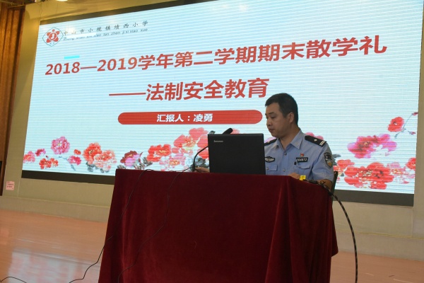 在鮮紅的國旗、振奮人心的奏唱國歌中拉開了散學(xué)禮序幕。首先,法制警官凌勇介紹了《未成年保護法》中的行為準(zhǔn)則,列舉了九種不良行為,增強了學(xué)生自我防范的意識,提醒同學(xué)們交通安全常記心中,引導(dǎo)學(xué)生健康上網(wǎng),拒絕沉迷游戲,合理安排假期時間,并在有趣的圖文中讓孩子們認(rèn)識了什么是掃黑除惡。