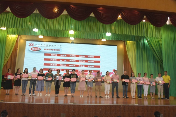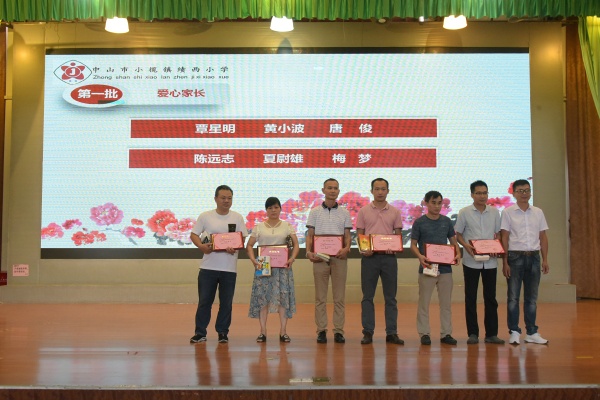 接著是愛心家長和最美志愿者的頒獎儀式。每天校園里,總看到他們忙碌的身影,為孩子的安全保駕護航。默默奉獻(xiàn),美化校園和傳遞正能量的他們?yōu)榭兾餍W(xué)增添了一道亮麗的風(fēng)景線。伴隨著師生們熱烈的掌聲,何桂雄校長和校委代表李明先生為這群最可愛的人頒發(fā)了榮譽證書。