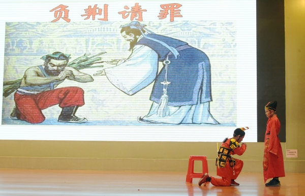 21日下午的小欖鎮(zhèn)績(jī)西小學(xué)體育館內(nèi),絕對(duì)可以用“星光熠熠、群星璀璨”來形容。在之前分年段舉行了三場(chǎng)課本劇的初賽后,今天第四場(chǎng)是全校最優(yōu)秀的7個(gè)課本劇的總決賽。觀摩課本劇總決賽的除了全校近一千名師生,還有從云南省昭通市來跟崗學(xué)習(xí)一周的四位校長(zhǎng)。