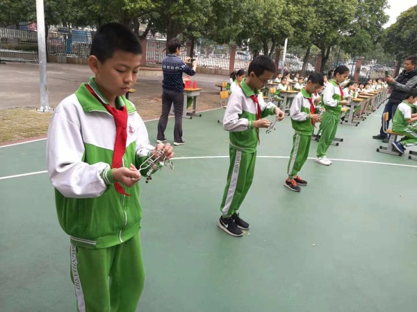 11月30號(hào)早上,數(shù)學(xué)月落下帷幕之際,學(xué)校把魔尺、魔方、疊疊杯、九連環(huán)及手指操比賽中的優(yōu)勝者,集中到籃球場(chǎng)為全體師生進(jìn)行展示。首先由低年級(jí)的孩子們展示魔尺,小小魔尺在孩子的手中飛速地轉(zhuǎn)動(dòng)著,變換出各種形狀,轉(zhuǎn)眼間“手槍” “鑰匙” “恐龍蛋” “小狗” “小船” “啞鈴” “心連心”等等圖案就出現(xiàn)在我們眼前。這是一場(chǎng)手、眼、腦并用的表演;百變魔尺炫出精彩,全校師生都為他們鼓掌,喝彩!接下來(lái)是中高年級(jí)的魔方、疊疊杯、九連環(huán)及手指操的展示,現(xiàn)場(chǎng)掀起了一浪又一浪的高潮,一陣陣掌聲和歡呼聲經(jīng)久不息,活動(dòng)場(chǎng)地洋溢著歡樂(lè)的氣氛。最后的驚喜莫過(guò)于兩位最有造藝的數(shù)學(xué)老師的才藝展示,引起全場(chǎng)師生的轟動(dòng)。