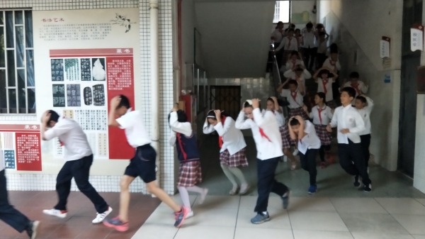 10月29日下午4:38分,警報拉響,演練開始。各班學(xué)生迅速有序按照各自逃生路線向安全區(qū)域疏散。每個班級由任課教師維持秩序、應(yīng)急疏導(dǎo),各樓梯口都有老師從旁指揮引導(dǎo)。學(xué)生聽從指揮、行動迅捷,沒有驚慌失措的喊叫,也沒有一人摔倒。各個樓層樓梯口老師最后進(jìn)行清場,保證沒有一個學(xué)生滯留。1000多師生僅用三分鐘時間就完成整個逃生演練,整個過程做到了快速、安全、有序。