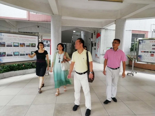 與會專家還在何桂雄校長的陪同下巡視校園。他們在粵曲專場宣傳報道駐足觀看。該展板真實記載著績西小學圍繞戲曲傳承文化普及和提高教育的歷程。聽著何校長的介紹,專家們給予充分肯定和鼓勵。一行人參觀了曲藝訓練室場,了解硬件軟件建設,對娃娃們演大戲的做法表示高度認同和贊許。