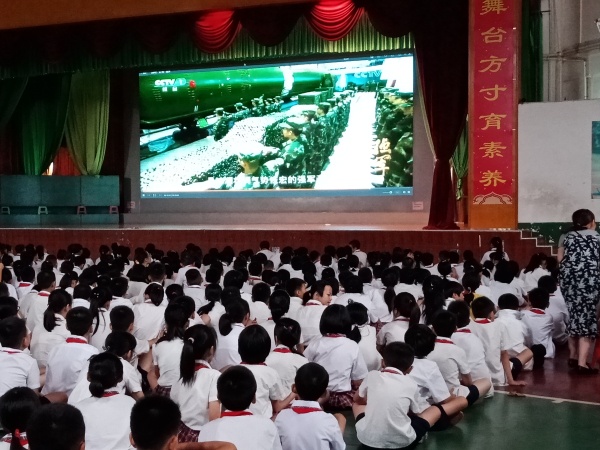 9月10日,伴隨清新的秋韻,績西小學(xué)組織全校師生在體育館觀看《強(qiáng)軍夢·家園情》國情教育片。