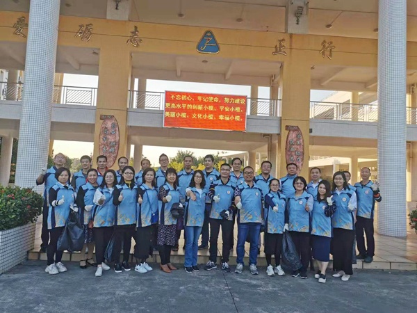 其次,由林木茂副書記帶領(lǐng)黨員們對(duì)校園進(jìn)行大清潔。黨員們?cè)诹帜久睍浀膸ьI(lǐng)下,分小組對(duì)校園特別是衛(wèi)生死角進(jìn)行全面的大清潔,以實(shí)際行動(dòng)踐行初心。黨員們有的揮汗鏟殘物,有的低頭撿垃圾,有的彎腰把地掃……雖然很多黨員下午連堂課,但大家毫無怨言,干得如火如荼,熱情高漲。年輕黨員青春洋溢,老黨員率先垂范。臟活、累活,黨員干部帶頭干,真正體現(xiàn)了黨員隊(duì)伍的先進(jìn)性。短短時(shí)間,就將校園環(huán)境清理得干干凈凈。