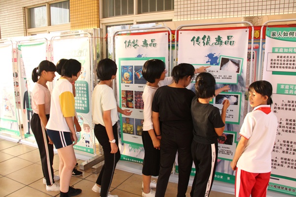 活動當(dāng)日還在菊城中學(xué)大堂設(shè)置了禁毒宣傳欄、禁毒宣傳站牌等,宣傳材料圖文并茂地描述了毒品的危害性及禁毒法律法規(guī)與常識。有關(guān)領(lǐng)導(dǎo)和學(xué)生們一起參觀學(xué)習(xí)。