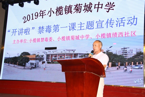 為了深入貫徹落實中山市禁毒工作,結(jié)合小欖鎮(zhèn)推進(jìn)三年“全民禁毒工程”攻堅沖刺工作和青少年毒品預(yù)防教育“6·27”工程,提升青少年學(xué)生防毒識毒拒毒能力,營造校園參與禁毒的濃厚輿論氛圍,9月20日下午,小欖鎮(zhèn)禁毒委、菊城中學(xué)和績西社區(qū)聯(lián)合在菊城中學(xué)舉辦“開講啦”禁毒第一課主題宣傳活動。舉辦單位的有關(guān)領(lǐng)導(dǎo),菊城中學(xué)1000多名師生參加了活動。活動由菊城中學(xué)鐘兆堂主任主持。