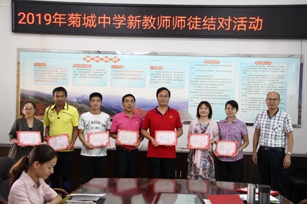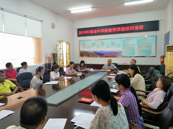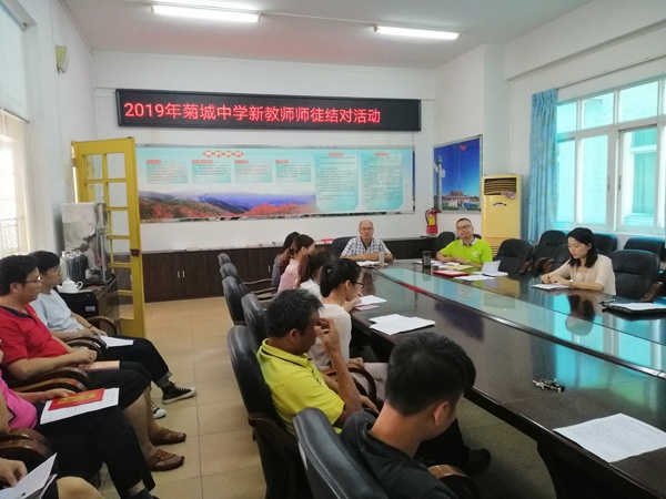 本學(xué)年,菊城中學(xué)新進臨聘教師8名。為了使新教師盡快熟悉本校教育教學(xué)情況,提升教育教學(xué)業(yè)務(wù)水平,9月5日下午,學(xué)校舉行了新教師師徒結(jié)對暨培訓(xùn)活動。