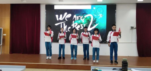 首先由10班小組代表朗誦《黃河頌》拉開本次比賽的序幕!各班小組成員之間密切配合,形式多樣:有整體展示的、有組合展示的、也有個體展示的。他們的聲音鏗鏘有力、富有感染力,完美的表現(xiàn)演繹了學校小組合作走向成熟,展現(xiàn)出了菊城中學小組合作的風采!打動著現(xiàn)場的每一位評委以及同學們,臺下的師生在側(cè)耳傾聽,時不時爆發(fā)出一陣陣熱烈的掌聲!