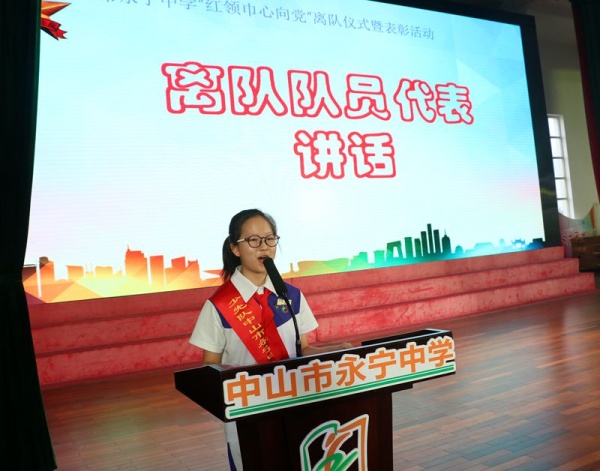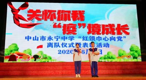 ——中山市永寧中學(xué)舉行“紅領(lǐng)巾心向黨”離隊(duì)儀式暨表彰活動(dòng)發(fā)布時(shí)間:2020-06-08 18:08 信息來(lái)源:本網(wǎng)站 瀏覽次數(shù):0
