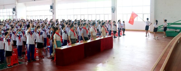 6月5日下午4點(diǎn),中山市永寧中學(xué)初一年級(jí)在學(xué)校體育館,隆重舉行“紅領(lǐng)巾心向黨”離隊(duì)儀式暨表彰活動(dòng)。陳清茂校長(zhǎng)、楊青華副校長(zhǎng)、德育處戴放良主任、羅結(jié)晶副主任等行政領(lǐng)導(dǎo)出席會(huì)議。