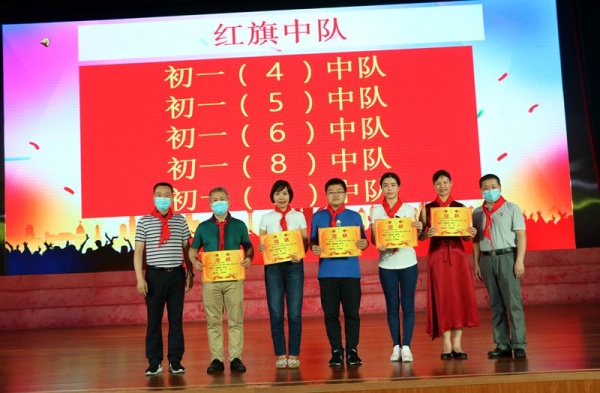 本學(xué)年以來(lái),在初一年級(jí)全體教師的辛勤培育下,涌現(xiàn)出了一批陽(yáng)光自信、博愛(ài)善良、勵(lì)志勤學(xué)的優(yōu)秀少先隊(duì)員,也培養(yǎng)出了一批責(zé)任心強(qiáng)、工作認(rèn)真負(fù)責(zé)的優(yōu)秀少先隊(duì)干部。為了表彰先進(jìn),促進(jìn)學(xué)生全面和諧發(fā)展,經(jīng)學(xué)校研究決定,對(duì)初一4中隊(duì)、初一5中隊(duì)、初一6中隊(duì)、初一8中隊(duì)、初一9中隊(duì)授予紅旗中隊(duì)榮譽(yù)稱號(hào)。對(duì)黃安琦等50名優(yōu)秀少先隊(duì)員、彭小珊等10名優(yōu)秀少先隊(duì)干部予以表彰。陳清茂校長(zhǎng)等行政領(lǐng)導(dǎo)以及各班中隊(duì)輔導(dǎo)員上臺(tái)為他們頒獎(jiǎng)。