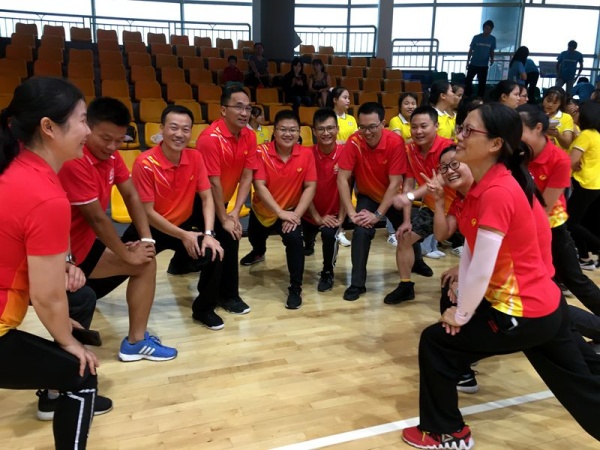 本次黨團(tuán)知識(shí)趣味運(yùn)動(dòng)會(huì)共分:男女混合跳大繩,步步為贏,老馬識(shí)途,珠行萬(wàn)里,黨團(tuán)知識(shí)闖關(guān)五個(gè)項(xiàng)目。比賽現(xiàn)場(chǎng)氣氛緊張,異常激烈,扣人心弦。每一個(gè)項(xiàng)目都要考驗(yàn)老師們的體力和團(tuán)體合作能力,在男女混合跳大繩項(xiàng)目中,四男四女的組合擰成一團(tuán),在強(qiáng)而有力的節(jié)奏中起伏跳動(dòng),選手們的心都是團(tuán)結(jié)一致的,最終跳大繩的項(xiàng)目在20個(gè)隊(duì)伍中勇獲第二名的好成績(jī)。在步步為贏的項(xiàng)目中,老師們需要手持三塊磚依次放在地面上踩著磚頭快速通過(guò),這非常考驗(yàn)個(gè)人的協(xié)調(diào)能力和平衡力,只見(jiàn)老師們從容淡定、有條不紊地一塊接一塊地移動(dòng)、行走,極大地考驗(yàn)了老師們的耐力。在其他項(xiàng)目的比賽中,永中的老師們更體現(xiàn)出團(tuán)結(jié)合作,精神飽滿(mǎn),認(rèn)真作答,每個(gè)項(xiàng)目均以接近滿(mǎn)分或名列前茅的成績(jī)出線。