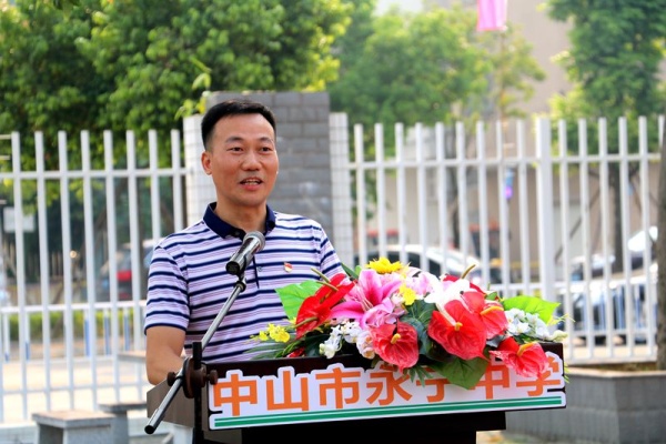 永寧中學(xué)陳清茂校長在致辭中指出,“百年大計,教育為本,立德樹人”乃教育之根本,永寧中學(xué)始終堅持立德樹人,培養(yǎng)德、智、體、美、勞全面發(fā)展的社會主義建設(shè)者和接班人。章偉志先生慷慨捐建集候車、休閑、學(xué)習(xí)等作用的校園功能區(qū)---偉志苑,偉志苑不僅是學(xué)校一道美麗的風(fēng)景線,更是永中校園文化的重要部分和寶貴財富。陳校長希望老師們在即將迎來新中國成立70周年之際,不忘初心,牢記使命,潛心教書育人,關(guān)心愛護(hù)學(xué)生,努力成為新時代“四有”好老師,希望同學(xué)們以優(yōu)秀校友章偉志先生為榜樣,努力學(xué)習(xí),立志成才,回報社會!