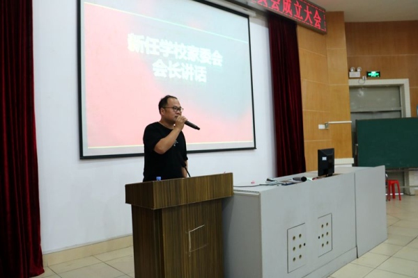 在新一屆學校家委會會長梁輝洪先生的發(fā)言中,表示要促進全體家長參與學校民主管理,支持學校做好教育教學工作,有效促進學生健康和諧發(fā)展。