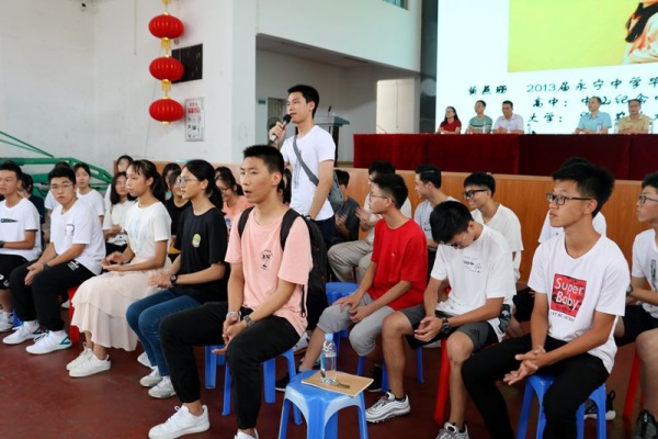 8月30日下午,大部分學(xué)生還沉浸在暑假的尾聲當(dāng)中,永寧中學(xué)安靜的校園內(nèi)已經(jīng)出現(xiàn)了三三兩兩身著校服的身影。永寧中學(xué)每年新初三學(xué)生的傳統(tǒng)活動(dòng)——“優(yōu)秀校友和初三學(xué)子交流會(huì)”正在舉行。