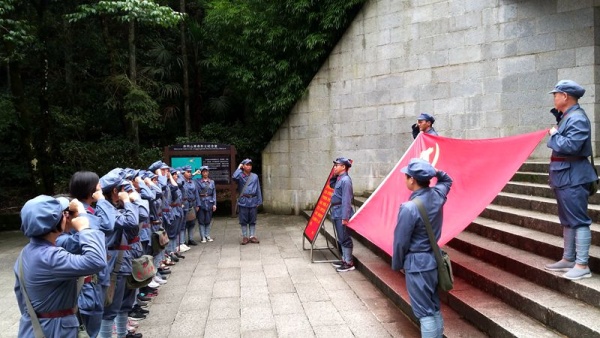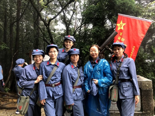 7月10日上午,學(xué)員們一大早就身著紅軍服,颯爽英姿,頗有當(dāng)年紅軍風(fēng)采,自豪感油然而生。尤其是來到井岡山紀(jì)念碑前合影,成為一道獨(dú)特的風(fēng)景。