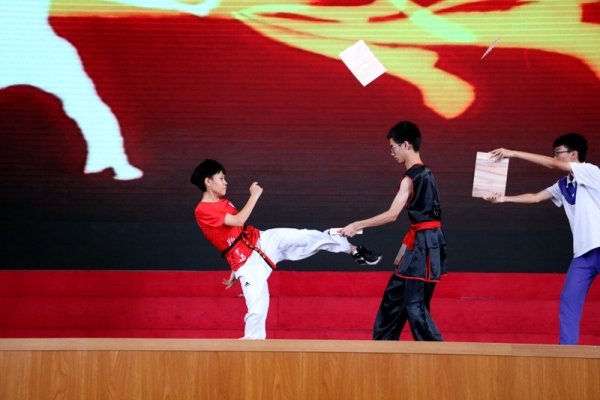文藝匯演節(jié)目豐富多彩,精彩紛呈。三(3)班的朗誦《畢業(yè)心聲》聲情并茂,傾訴了全體初三學(xué)子們的心聲;三(1)班的武術(shù)表演《武術(shù)少年》緊張激烈,展現(xiàn)了中華武術(shù)的非凡魅力;三(2)班的街舞旋轉(zhuǎn)飛舞,揮灑自如,博得全場陣陣歡呼聲、尖叫聲……