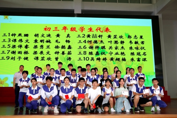 首先,劉鵬校長致辭。劉校長衷心感謝初三全體教師辛勤付出,衷心祝愿初三學(xué)子們都能夠?qū)崿F(xiàn)自己的理想,希望同學(xué)們?;啬感?纯础⑿iL并為學(xué)生代表頒發(fā)畢業(yè)證書。緊接著,龍小紅主任宣讀優(yōu)秀畢業(yè)生名單,并為他們頒獎。
