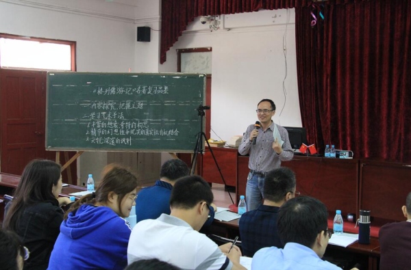 接著,中山市初中語文教研室張寶華老師結(jié)合2019年新考綱的“變”與“不變”發(fā)表了自己的見解,針對(duì)各校的備考方案和困惑給予了指導(dǎo)性意見。他表示,名著的整本書閱讀、語文教學(xué)格局的提升以及對(duì)學(xué)生的素質(zhì)培養(yǎng),這三個(gè)方面將成為今后的語文教學(xué)工作的重點(diǎn),語文老師要站在思維、審美、人文的角度去把握教學(xué)的方向,針對(duì)中考備考,張老師還提出了許多具體的操作性強(qiáng)的措施,與會(huì)的老師們?cè)趶埨蠋煹闹笇?dǎo)之下得到很大的啟發(fā)。
