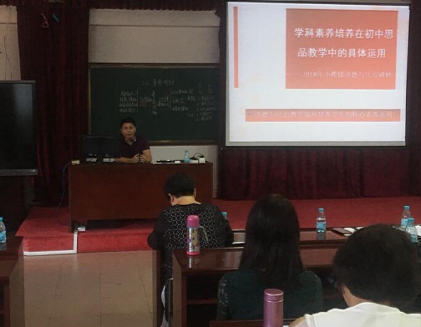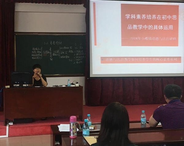 接著,鎮(zhèn)道德與法治教研組組長(zhǎng)杜紅波主任開(kāi)設(shè)專題講座——《學(xué)科素養(yǎng)培養(yǎng)在初中思品教學(xué)中的具體運(yùn)用》。杜主任根據(jù)“什么是學(xué)生發(fā)展核心素養(yǎng)”、“什么是道德與法治學(xué)科核心素養(yǎng)“發(fā)表了自己的見(jiàn)解。并且,杜主任結(jié)合自身教學(xué)實(shí)例,與老師們分享了自己對(duì)于核心素養(yǎng)在課堂中的運(yùn)用心得:構(gòu)建知識(shí)體系,培育理性精神;關(guān)注時(shí)政熱點(diǎn),積淀人文素養(yǎng);質(zhì)疑探究爭(zhēng)鳴,點(diǎn)燃創(chuàng)新素養(yǎng);創(chuàng)設(shè)主體活動(dòng),提升媒介素養(yǎng)。杜主任的發(fā)言,讓老師們深受鼓舞,也明白了與時(shí)俱進(jìn)、主動(dòng)提升自我的必要性。此次專題講座達(dá)到了很好的交流促進(jìn)的作用。