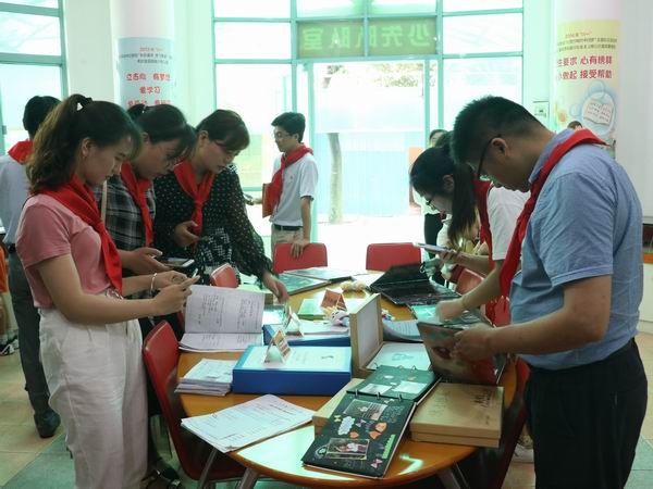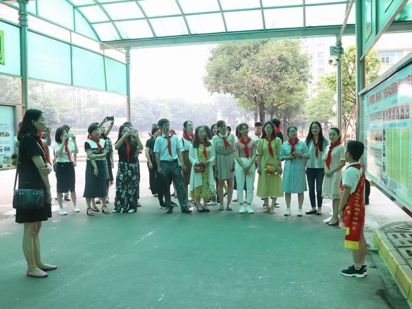 分享匯報(bào)結(jié)束后,大家一起觀摩了校園益智游戲活動(dòng)、紅領(lǐng)巾社團(tuán)活動(dòng)。大家還參觀了少先隊(duì)陣地。在大隊(duì)室,菊城小學(xué)的“全員旗手檔案”“隊(duì)籍管理”“大隊(duì)委筆記”“雛菊爭(zhēng)章”等項(xiàng)目,深深地吸引了大家。小講解員們也紛紛給客人們講解介紹。