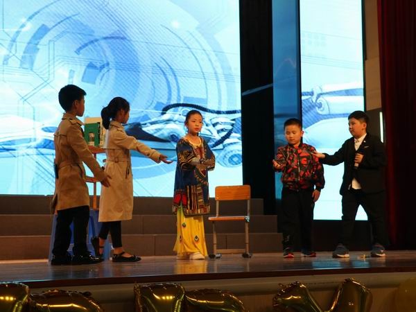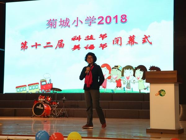 本屆校園科技節(jié)閉幕式與校園英語節(jié)閉幕式同臺展出,并在菊城小學(xué)體育館內(nèi)舉行。閉幕式現(xiàn)場里,生動有趣的科學(xué)秀表演,引起了臺下的同學(xué)們的連連喝彩,精彩絕倫的科普劇表演,加深了同學(xué)們對前沿科學(xué)的認(rèn)識。在閉幕式的最后,陳玉玲校長發(fā)表了講話,并對本屆校園科技節(jié)給予了高度的肯定。