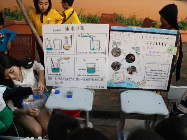 在閉幕式結(jié)束后,是全校師生參與的科技游園活動,包括了60多個(gè)新穎有趣的科學(xué)互動項(xiàng)目、優(yōu)秀科技小制作、優(yōu)秀科幻畫作品與優(yōu)秀金點(diǎn)子的展覽。在游園活動中,同學(xué)們一起開動聰慧的大腦、運(yùn)用靈巧的雙手,在自己喜愛的各項(xiàng)活動中探索科學(xué)的奧秘,在心里播下科學(xué)的種子。