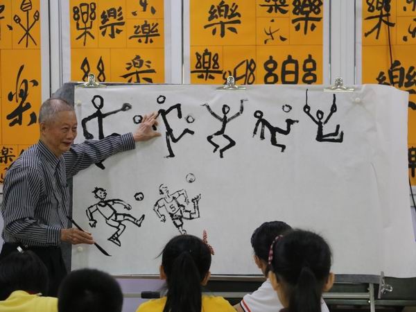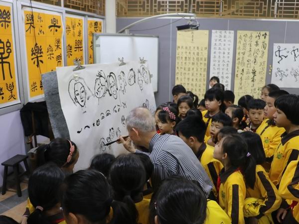29日下午,受中山市菊城小學(xué)的邀請(qǐng),方唐老師到菊城小學(xué)給國(guó)畫社團(tuán)的同學(xué)們上了一堂有趣的水墨人物繪畫課。他系統(tǒng)地向?qū)W生傳授著人物繪畫的步驟與方法,重點(diǎn)強(qiáng)調(diào)人物動(dòng)態(tài)的變化和把握。方老師一邊活潑生動(dòng)地演示一個(gè)個(gè)動(dòng)態(tài),隨后把這些動(dòng)態(tài)基本型畫出來,再逐步教導(dǎo)孩子如何根據(jù)動(dòng)態(tài)基本型畫出完整的人物造型、深入刻畫人物的五官、表情,不一會(huì)兒,一幅充滿各種人物表情的生活動(dòng)態(tài)圖就展現(xiàn)了出來,這生動(dòng)的形象與直觀的教法引來孩子們“哇!哇!哇!”的夸贊聲。方老師還循循教導(dǎo)孩子畫畫一定要持之以恒,要善于觀察生活、記錄生活,遇到自己感興趣的人和事物動(dòng)動(dòng)畫筆畫出來,做好積累,建立自己的畫畫知識(shí)庫(kù)。畫多了,畫熟了,以后自己想要畫的造型就能馬上畫出來了。孩子們也不甘落后,紛紛在自己的小畫本上學(xué)著方老師的畫法,開始構(gòu)思自己的作品,方老師都予以認(rèn)真地指導(dǎo)。整節(jié)課孩子們都學(xué)得專注開心,熱情高漲,一邊聽課一邊不時(shí)向老師請(qǐng)教問題?,F(xiàn)場(chǎng)的教與學(xué)的互動(dòng)氛圍非常濃厚,同學(xué)們都非常喜歡童趣十足、幽默活潑的方唐老師,課后小畫迷都要方老師給自己簽名呢!