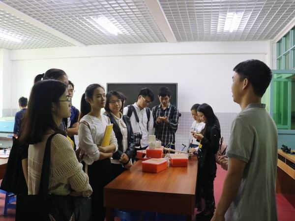 16日上午,教師進(jìn)修學(xué)院周朝華老師帶領(lǐng)中山市小學(xué)科學(xué)新教師們抵達(dá)中山市菊城小學(xué)。首先在陳新華主任的引導(dǎo)下參觀了科教氛圍濃厚的校園。菊城小學(xué)簡(jiǎn)單樸實(shí)卻能很好契合科技教育及科學(xué)校園的科教功能室場(chǎng)和便于開(kāi)展科教活動(dòng)的校園環(huán)境讓新入職的科學(xué)教師們羨慕不已。
