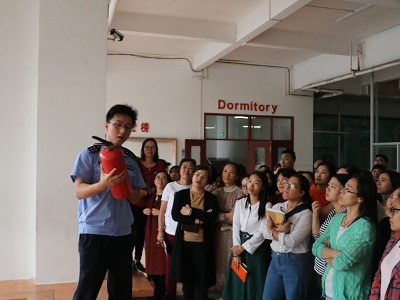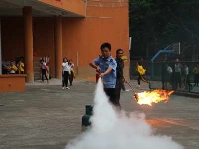 講座結(jié)束,蔡警官親自示范如何正確使用干粉滅火器和消防栓水帶。隨后,負(fù)責(zé)學(xué)校安全的袁有民副校長還現(xiàn)場演示了滅火器的操作程序。老師們躍躍欲試,并分組進(jìn)行演練。