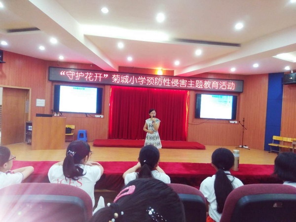為增強(qiáng)女生安全防范意識,提高女生自我保護(hù)能力,促進(jìn)女生的身心健康發(fā)展,7月4日上午,菊城小學(xué)在學(xué)校階梯教室對六年級女生開展《守護(hù)花開,女生自我保護(hù)》主題教育活動。