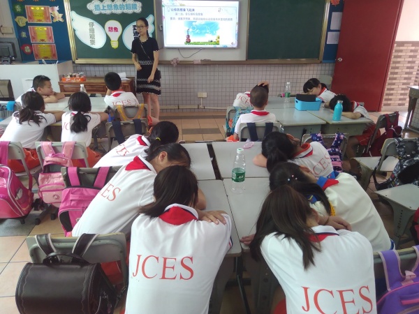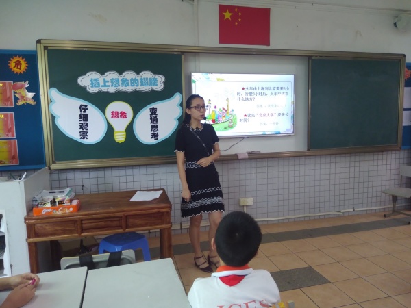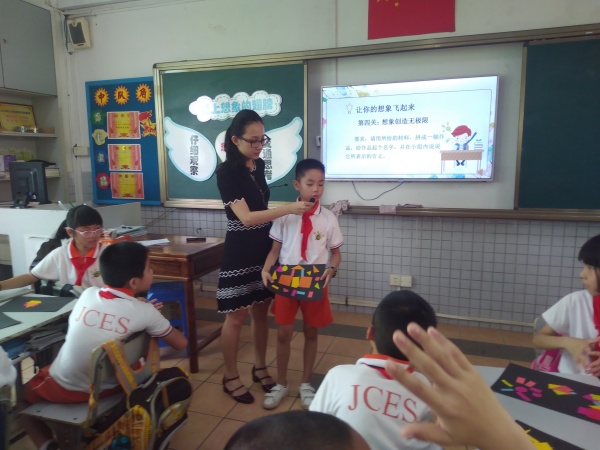 首先,由豐華學校張佩霞老師給四(5)班學生上了一堂精彩的心理活動課,主題為《張開想象的翅膀》。張老師帶領同學們通過有趣的熱身活動,讓大家迅速集中了注意力,投入到課堂當中。課堂開始時,張老師通過有趣的圖片引出了課題。接著通過兩個活動讓學生們掌握了想象的兩個法寶。同學們帶著想象的法寶進行闖關游戲,分別考驗了他們聽的想象、看的想象、用的想象。最后綜合運用創(chuàng)造想象,制作出屬于自己的作品。張老師語言風趣幽默,反饋豐富到位,孩子們在有趣的游戲當中,享受著想象的樂趣。