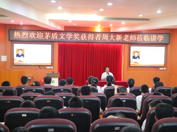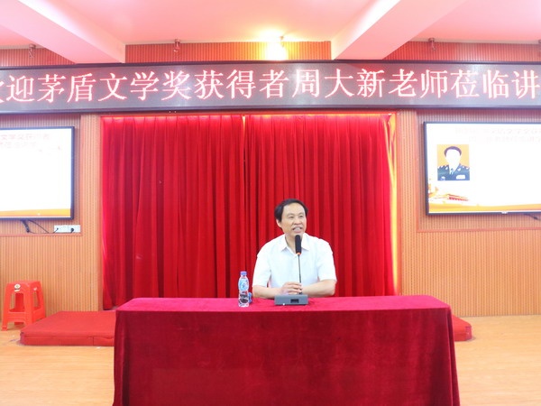4月23日上午,著名作家、茅盾文學獎得主周大新老師蒞臨菊城小學,在階梯教室為六年級師生講學,菊城小學陳玉玲校長、劉云濤副校長也來到了講學現(xiàn)場認真聆聽。