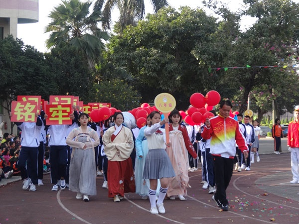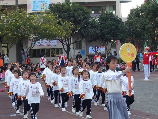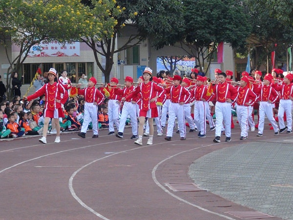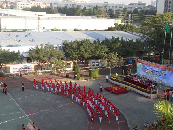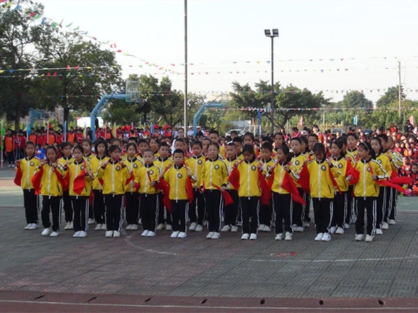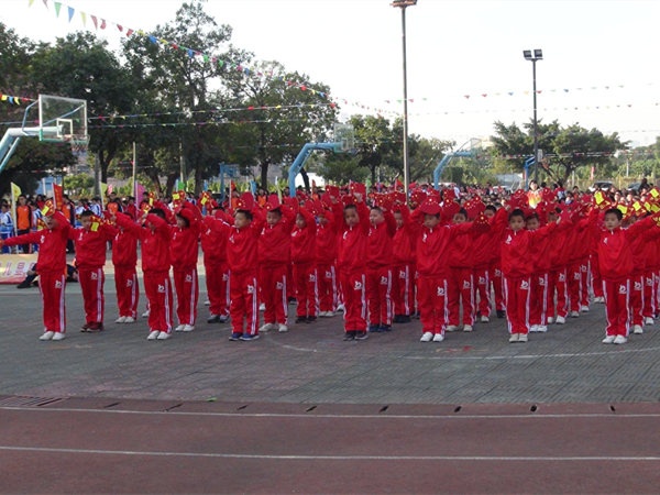 伴隨著《運動員進(jìn)場曲》,學(xué)校國旗隊、校旗隊、大賽會徽、大賽口號、彩旗隊、鮮花隊、鼓號隊、各年級代表隊和裁判隊依次進(jìn)場。入場儀式最精彩的是各年級學(xué)生代表組成的方隊入場,他們在進(jìn)場儀式上進(jìn)行了具有各級特色的入場式表演,有舞蹈、有體操、有古裝短劇······精彩的表演贏得了在場嘉賓和家長們的陣陣掌聲。進(jìn)場儀式結(jié)束后,舉行了升旗儀式,隨著國旗的冉冉升起,全體師生激動萬分。隨后學(xué)校校長劉萬軒先生致開幕詞,這是學(xué)校在小欖鎮(zhèn)運動會取得優(yōu)異成績后舉行的一次盛會,希望各位運動員能繼續(xù)發(fā)揮小欖鎮(zhèn)運動會上的拼搏精神,秉著友誼第一比賽第二的精神賽出水平,展現(xiàn)出班級體的凝聚力,為班級爭光。接著裁判員彭雪紅老師、運動員代表徐金富同學(xué),分別代表裁判員、運動員宣誓。最后董事長陳添先生宣布東陽學(xué)校校第十三屆田徑運動會開幕,整個會場掌聲響起,把開幕式推向了高潮。開幕式結(jié)束后,學(xué)校舞蹈隊舞蹈表演了舞蹈《天使》、《與魚共舞》,把體育和藝術(shù)很好地結(jié)合在一起。