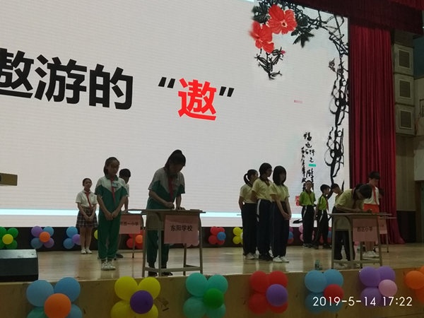 本次比賽首先各校分組抽簽23支參賽隊分為3組,每8隊為1組。每組前4隊共12隊直接出線進(jìn)入半決賽。12隊通過抽簽產(chǎn)生2組,每組6隊,進(jìn)入半決賽,每組的前三名直接出線進(jìn)入決賽,出線的六隊進(jìn)行決賽,決出一等獎。東陽學(xué)校5名隊員預(yù)賽分在第一組,預(yù)賽,各隊都是實力強(qiáng)勁的選手,課內(nèi)生字、課外生字都讓臺上臺下選手出乎意料。隨著部分隊員離場,后面戰(zhàn)友更加緊張。經(jīng)過30輪的比拼,才驚險決出進(jìn)入半決賽前四名的隊伍。東陽學(xué)校也是憑借之前選手打下的基礎(chǔ)和最后一位賴穎怡同學(xué)的沉穩(wěn)應(yīng)戰(zhàn),進(jìn)入了半決賽。半決賽東陽學(xué)校被分在第二組,經(jīng)過第一輪的經(jīng)驗,半決賽上,各選手已經(jīng)更加沉著應(yīng)戰(zhàn),最終16輪之后,東陽學(xué)校在還有兩位選手沒出場之下進(jìn)入了決賽,這對各隊員是極大鼓舞。決賽場上,生字難度進(jìn)一步提高,對各位的選手知識量是一個極大考驗,每個生字都讓觀眾出乎意料,為選手的精彩比賽不斷發(fā)出熱烈的掌聲,最終經(jīng)過34輪的角逐,才決出第一名。