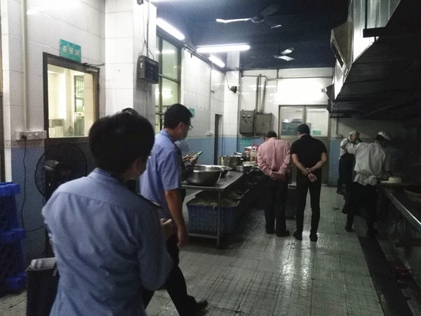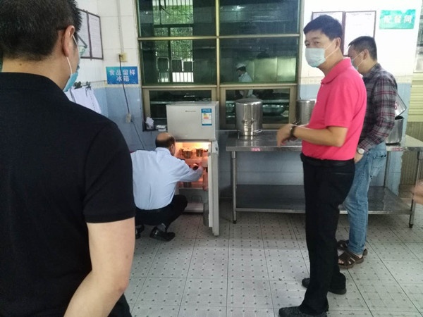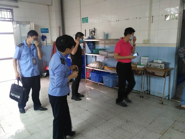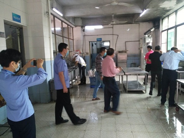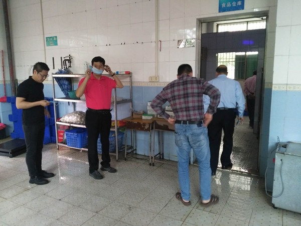 本次飛行檢查主要主要檢查了學校飯?zhí)迷牧系牟少?、供應商的索證索票、各專間的管理、食品的留樣,相關制度的公示,資料的歸檔等情況。檢查組成員認真地檢查各功能間的衛(wèi)生以及防護措施,制作流程和留樣質量等工作,最后一致肯定了東陽學校食品安全工作落實到位,責任到人,各細節(jié)工作布置得妥當,飯?zhí)玫牧魳?,制作流程都能按要求保質保量。并給了幾點建議:烹調間荷臺上用瓦缽盛裝的各種用于烹調的佐料要對應標明相關物品的標簽;預進間的洗手池要徹底清洗干凈;粗加工間和備餐間的紗窗門,要安裝彈簧,能夠讓此門自動閉合;食品留樣冰箱里的留樣,容器上面的標簽日期要精確。并提醒采購人員要提高警惕,物品來源一定要索證索票,要與正規(guī)貨商簽訂相應的合同,所有的有葉蔬菜、無葉瓜果都要進行藥檢,預防萬一;飯?zhí)貌糠衷O備要求更新、維修。檢查組田醫(yī)生也提醒,要老師們對學生進行毒蘑菇預防教育工作,學校食品安全要嚴把關,留樣、制作流程要相關人員跟進。教育事務指導中心黃校長強調:食堂主管人員、食品衛(wèi)生監(jiān)督員在食品安全上一定要打起十二分精神,不得馬虎,不得掉以輕心,堅決杜絕一切安全事故的發(fā)生。