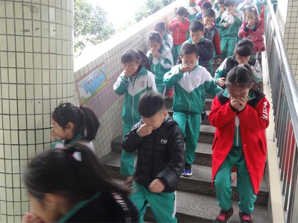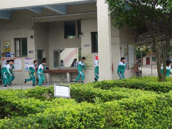 一陣急促的警報(bào)鈴聲響起,同學(xué)們們在班主任老師的帶領(lǐng)下,迅速停止手中的一切活動(dòng),掩住口鼻,俯首彎腰,有秩序地按照學(xué)校之前預(yù)定的路線跑步撤離教學(xué)樓。到達(dá)操場后,班主任馬上整隊(duì)清點(diǎn)人數(shù),確保全班同學(xué)都到達(dá)指定地方“避險(xiǎn)”。除參與疏散指揮的各樓梯口的教師外,其余教師都按照應(yīng)急預(yù)案的要求,和學(xué)生同時(shí)到達(dá)操場。整個(gè)過程,同學(xué)們都保持沉著、冷靜的心態(tài),認(rèn)真嚴(yán)肅,不出現(xiàn)嘻哈打鬧現(xiàn)象,從教學(xué)樓五樓到學(xué)校大操場,整個(gè)過程僅用了3分58秒時(shí)間,期間并沒出現(xiàn)任何安全問題。