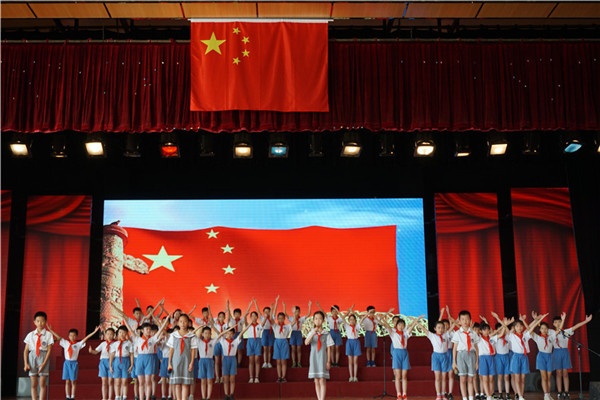 隨后,現(xiàn)場全體人員面向國旗,高舉右拳,在洪智躍老師的帶領下高呼:“祖國萬歲”,口號聲響徹館場,抒發(fā)了廣源學校師生對黨和祖國無比熱愛的豪邁情懷。學校小杜鵑合唱團和四(5)班的同學以歌聲與朗誦為祖國母親的生日獻禮,豪情滿懷的聲音,如海、如潮,使人精神振奮、思潮澎湃。