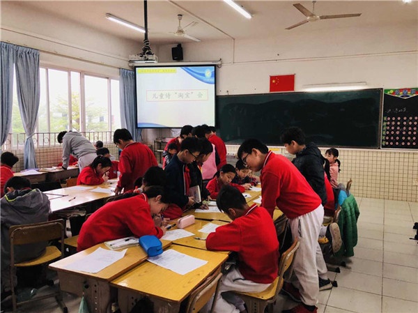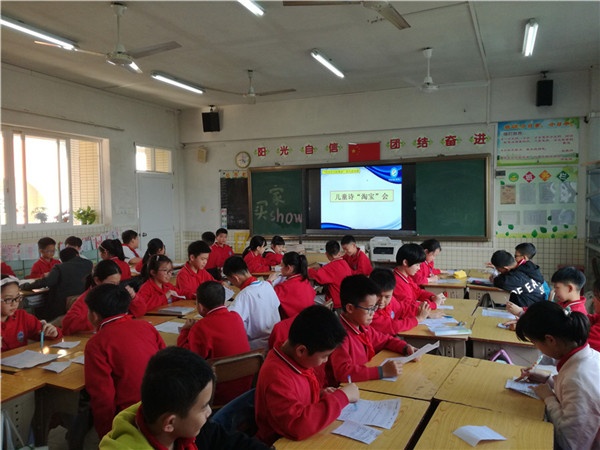 語文是一門實踐性很強(qiáng)的課程,作文教學(xué)一直是小學(xué)語文教學(xué)的難點(diǎn)。學(xué)生寫作能力是在實踐中形成的,缺乏寫作實踐支撐的習(xí)作教學(xué)注定是低效的。有鑒于此,小欖廣源學(xué)校省級課題《“快樂作文趕集會”語文活動課程的開發(fā)與實施研究》力圖改變學(xué)生作文交流少、讀者單一的問題,以促進(jìn)學(xué)生作文交流和實踐為目標(biāo),開展多元習(xí)作活動,培養(yǎng)學(xué)生創(chuàng)新精神和語文實踐能力。本周,五年級語文老師在各班開展“快樂作文趕集會——兒童詩淘寶活動”。