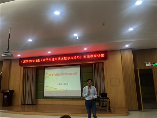 為更新家長家庭教育觀念,樹立科學(xué)的家庭教育方法;進(jìn)一步加強(qiáng)學(xué)校、家長、老師之間的有效溝通,實現(xiàn)家校共育,讓孩子健康快樂成長。2019年3月13日晚,廣源學(xué)校2016級全體老師和家長,在階梯教室召開《親子溝通基本理念與技巧》家庭教育講座暨家長會。