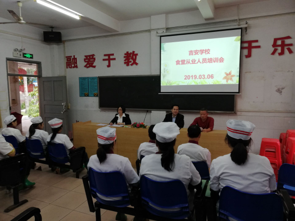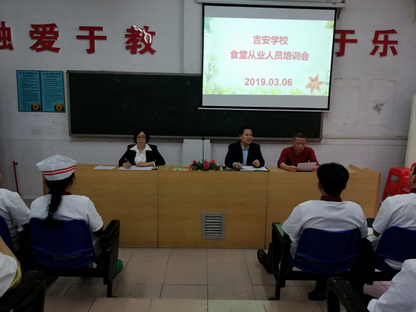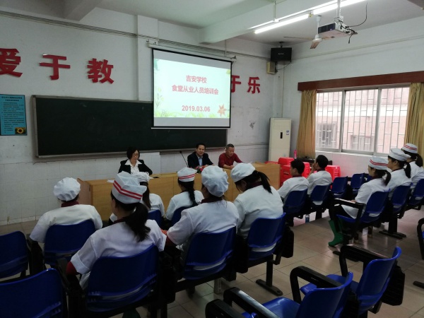 為使吉安學(xué)校食堂管理操作工作科學(xué)化,消除可能存在的學(xué)校食品安全隱患,給廣大師生營(yíng)造良好的就餐環(huán)境,吃放心飯,吃健康飯,開(kāi)心工作,開(kāi)心學(xué)習(xí)。2019年3月6日,吉安學(xué)校組織學(xué)校食堂從業(yè)人員進(jìn)行了食品安全專(zhuān)項(xiàng)培訓(xùn)。本次會(huì)議由后勤魏勤英主任主持召開(kāi),所有食堂從業(yè)人員參與。
