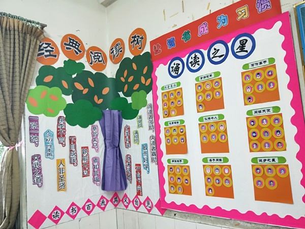 在全體師生們的巧手裝扮下,各班環(huán)境煥然一新,美觀、整潔、溫馨,每一個角落都體現(xiàn)出獨具匠心的文化氣息,每一寸空間都充溢著濃烈的讀書求學(xué)氛圍。班級文化布置豐富多彩,圖文并茂,凸顯個性和美感,充分展現(xiàn)學(xué)生的活動和風(fēng)采。教室的“閱讀天使”、“心愿樹”、“書香小屋”、“故事大王”、“親子共賞”等滿是創(chuàng)意的別致空間,使人耳目一新。每一間教室都體現(xiàn)著創(chuàng)意和特色,每個班級都展示著自己的亮點和別致,真正做到讓“四壁說話”,讓“每一面墻”都成為“無聲的導(dǎo)師”;細微之處無不滲透著師生們的智慧和創(chuàng)造,以及對班級文化的獨特理解。班班有特色,班班皆精彩。