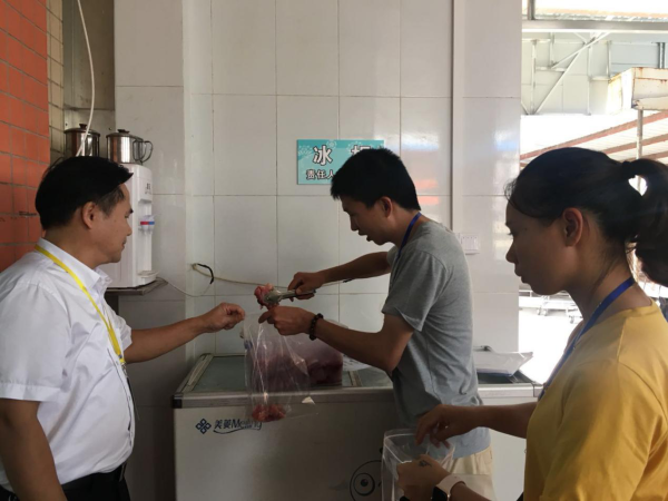 2018年10月8日中午,中山市食品藥品監(jiān)督管理局委托工作人員劉求等一行三人來到小欖吉安學(xué)校對食堂食品進行抽樣檢查。該校校長韋志海、后勤處羅錦信、魏勤英兩位主任接待了檢查組并陪同檢查。