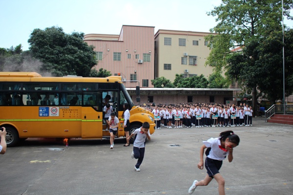 為切實(shí)做好校車安全工作,確保乘車學(xué)生生命安全,培養(yǎng)師生在遇到緊急情況時(shí),能夠冷靜面對(duì)突發(fā)事故,做到安全、有序、快速的撤離事故現(xiàn)場(chǎng),安全逃生。9月12日下午,小欖鎮(zhèn)文體教育局在吉安學(xué)校舉行校車乘員緊急疏散演練現(xiàn)場(chǎng)會(huì)。親臨現(xiàn)場(chǎng)會(huì)的領(lǐng)導(dǎo)有小欖鎮(zhèn)文體教育局盧穎禧局長(zhǎng)、小欖鎮(zhèn)教育事務(wù)指導(dǎo)中心鄧永飛副主任、小欖交警大隊(duì)相關(guān)領(lǐng)導(dǎo)、社區(qū)消防隊(duì)相關(guān)領(lǐng)導(dǎo)以及吉安學(xué)校全體師生。這充分表現(xiàn)了鎮(zhèn)教體局、交警大隊(duì)對(duì)這次演練活動(dòng)的重視,對(duì)吉安學(xué)校師生的關(guān)懷。